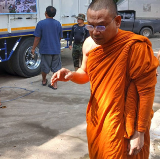 首站: 队伍向合艾西塔兰寺运送了物资,并在那里受到宋卡府僧长顾问、合艾西塔兰寺住持 Phra Ratcha Pariyatithada (Somphot Kijjasaro) 的欢迎。队伍还向该寺的寺院管理人员供奉了 50,000泰铢 的抗洪救灾资金。